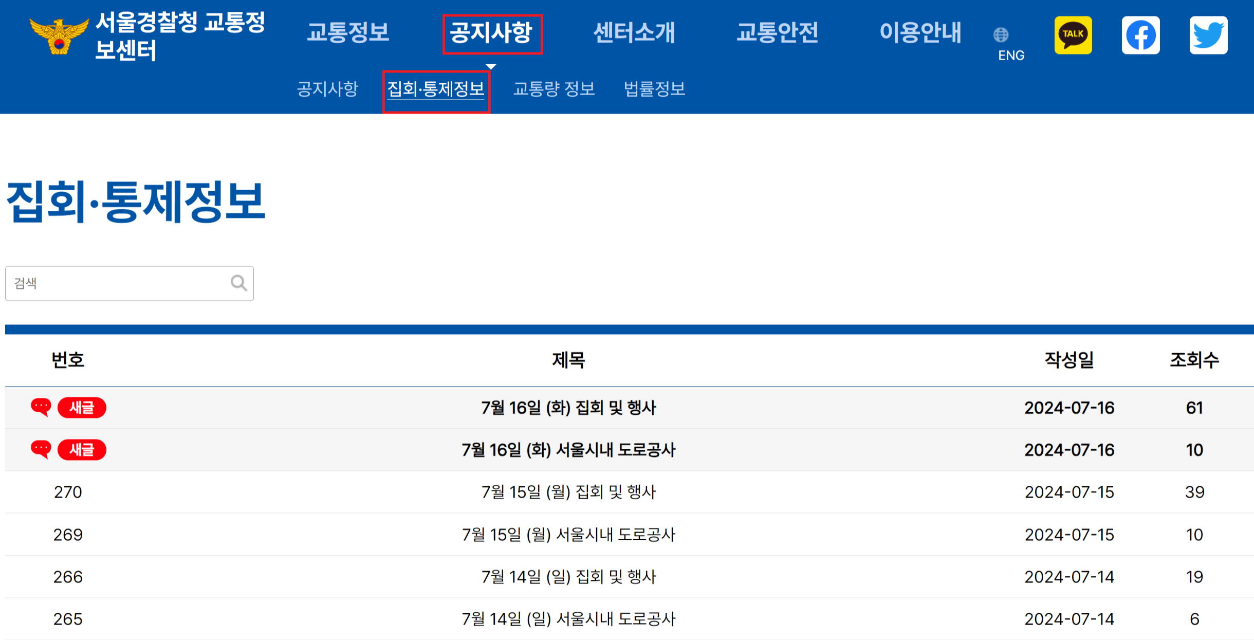 - 이용 방법: 사이트 내의 '교통정보' 또는 '공지사항→ 집회 · 통제정보' 메뉴에서 확인 가능합니다.