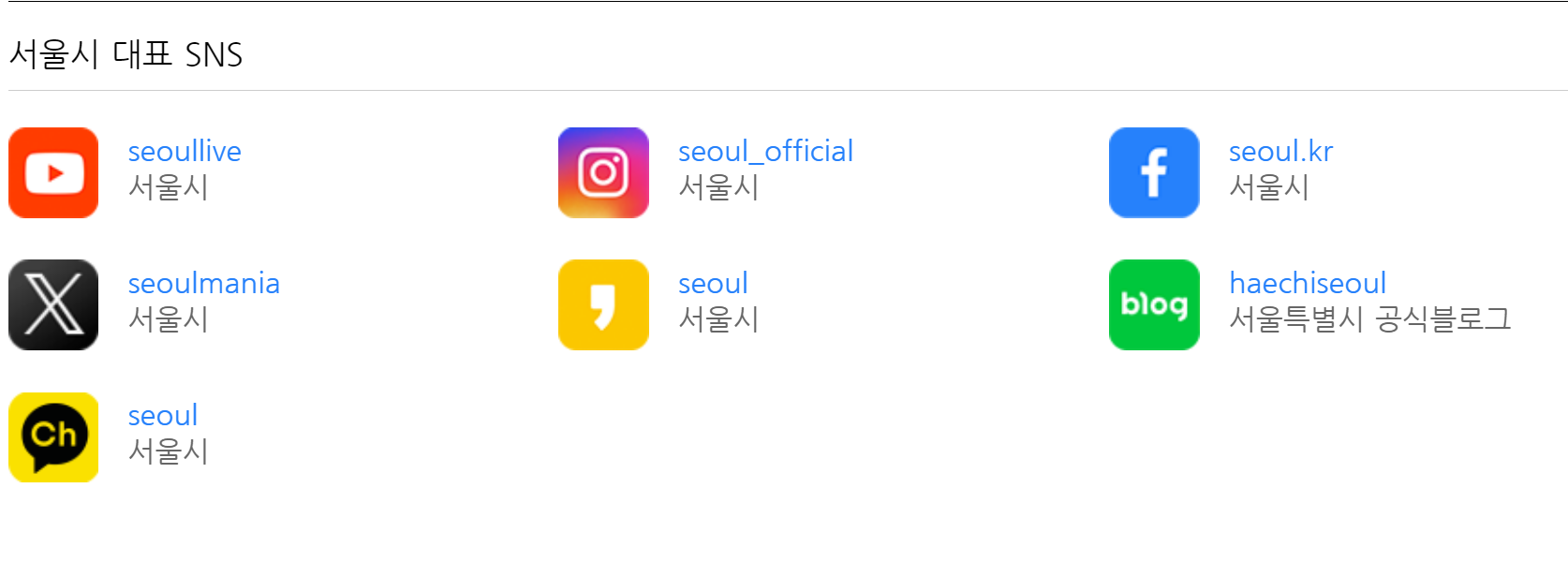 - @seoulmania : 서울시청 공식 트위터 계정