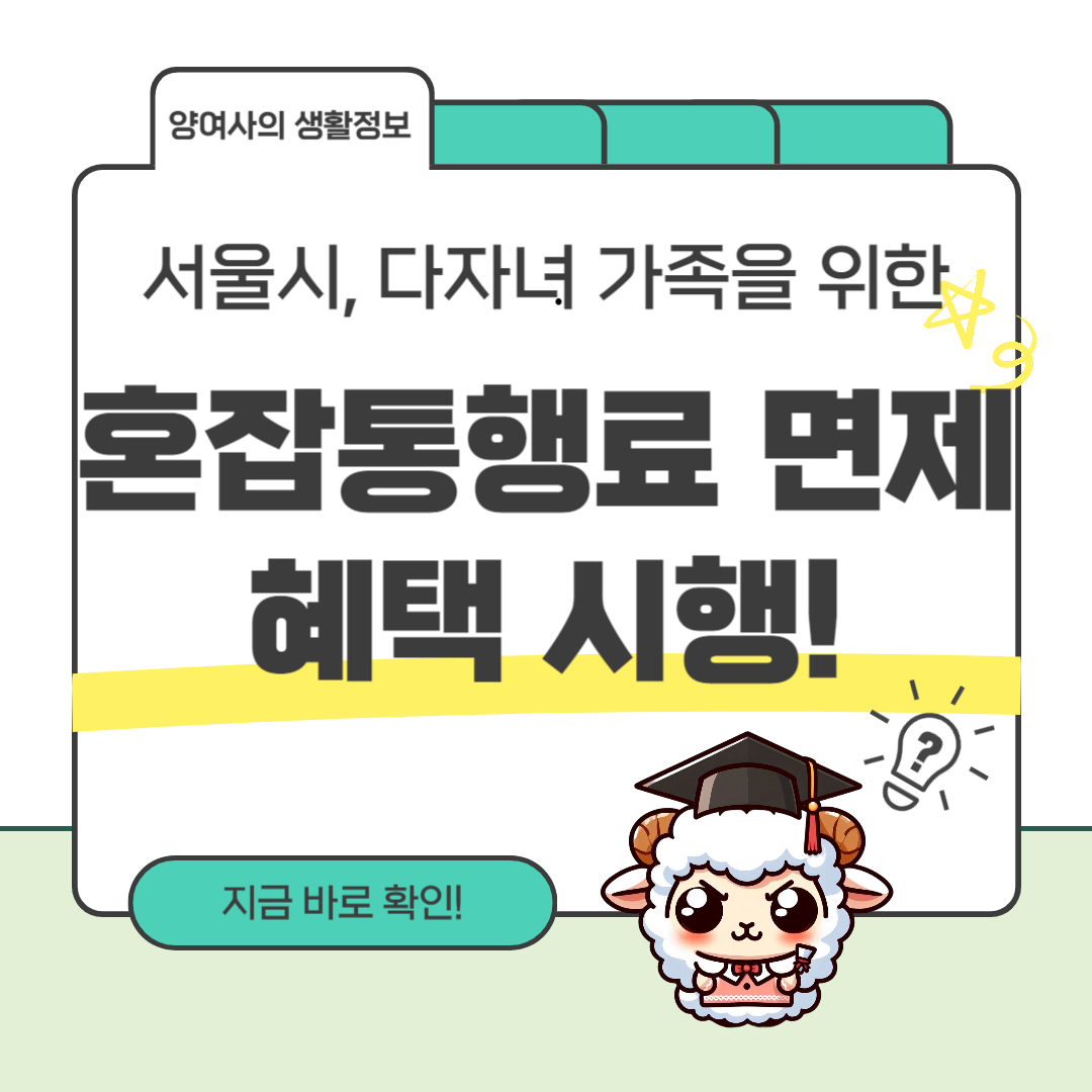 오늘은 서울시에 거주하는 다자녀 가족들이 꼭 알아야 할 좋은 소식을 전해드리려고 해요. 바로 8월 21일부터 시행되는 남산 1·3호 터널 혼잡통행료 면제 정책에 대한 내용입니다.