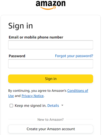 - 아마존 계정으로 로그인합니다. 아직 계정이 없다면, 먼저 계정을 생성하세요.