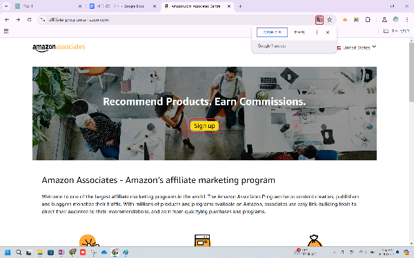 - 먼저, 구글 크롬에서 아마존 어필리에이트 웹사이트 방문하세요.
