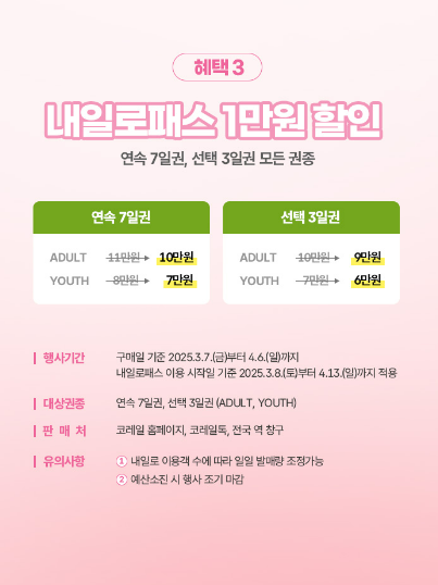 만 34세 이하 청년 대상 여행패스인 '내일로패스'도 특별 할인!