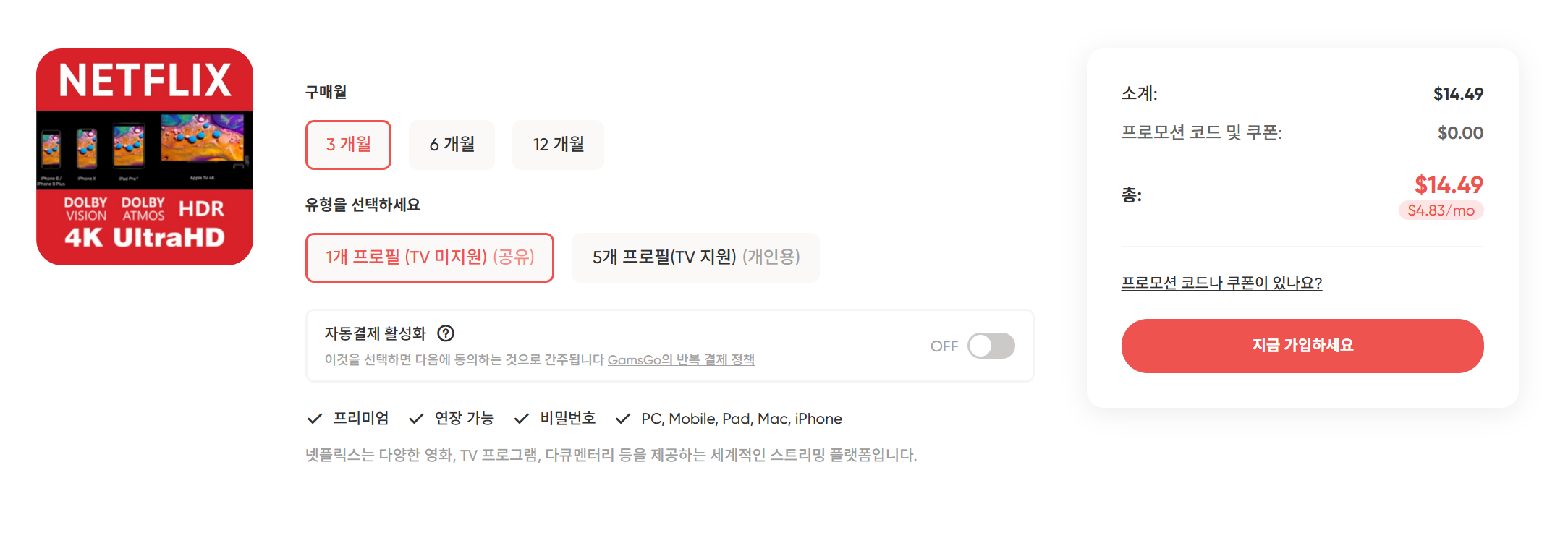매달 구독비로 나가는 돈이 부담스러우셨다면, 이제는 GamsGo로 바꿔보세요. 혼자 부담하지 말고, 함께 나눠 쓰며 절약하는 가장 똑똑한 방법이 여기에 있습니다.