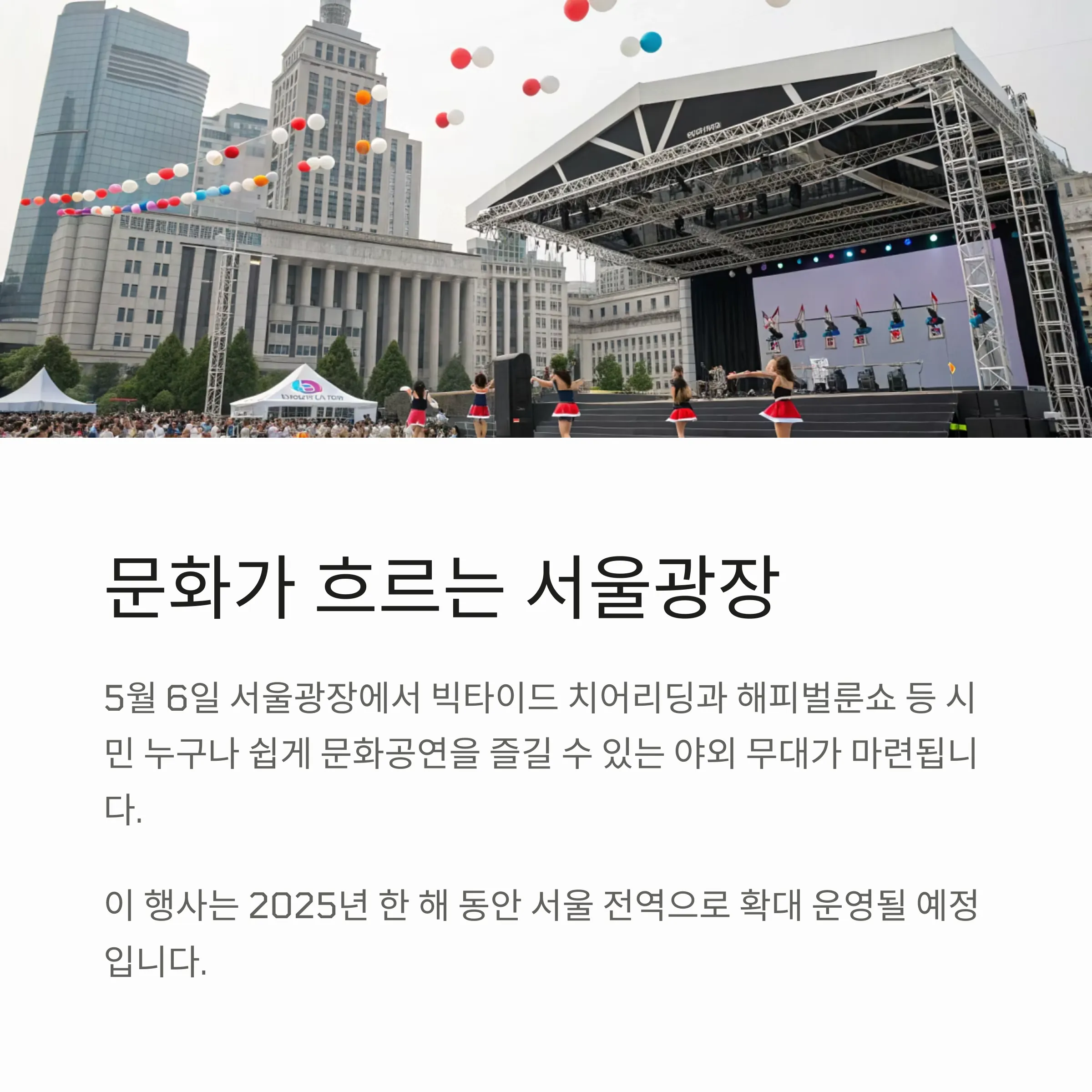 5월 6일에는 서울광장에서 '문화가 흐르는 서울광장' 행사가 열리며