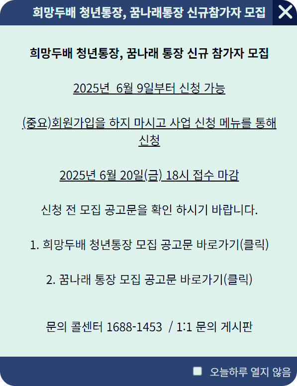 기존 유사 통장(청년내일 저축계좌 등) 만기 수령자라면 중복 신청이 불가능합니다. 중도 해지자는 조건부 신청 가능하며, 관련 사유