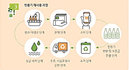 - 소주, 맥주 등 빈용기 보증금 대상 유리병은 소매점 등에 반납합니다.