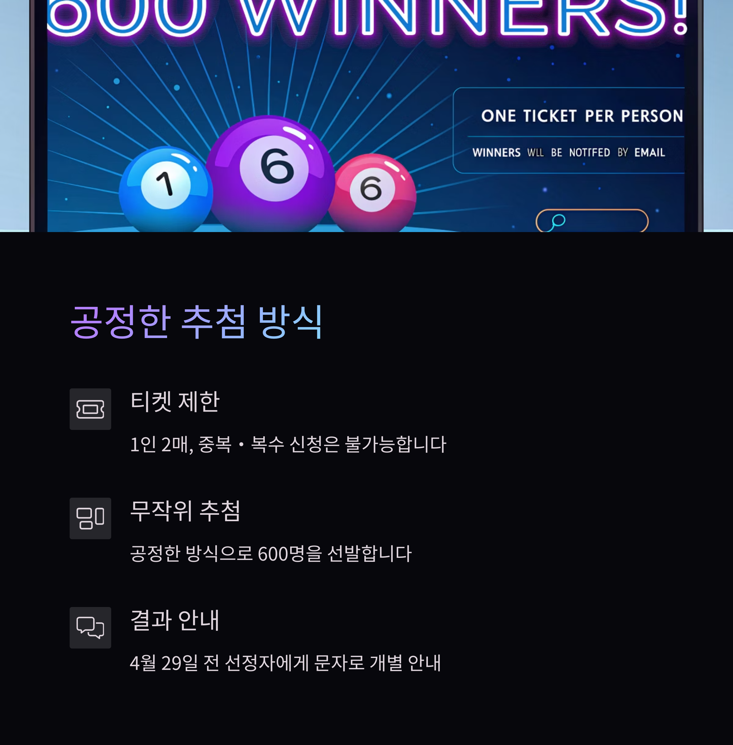 총 600명이 추첨을 통해 선정됩니다.
